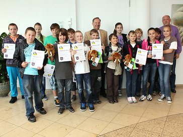 Ebenfalls mit einer Urkunde ausgezeichnet wurden die Klassen, die in der Vorrunde die besten „Mannschaftsleistungen“ gezeigt hatten. Bei den Fünftklässlern belegte die Klasse 5b der Johann-Gutenberg-Realschule in Langenfeld den ersten Platz vor ihrer Parallelklasse, der 5a. Platz drei ging an die Klasse 5b der Emil-Barth-Realschule aus Haan. Platz eins bei den Sechstklässlern ging an die Klasse 6a der Realschule Kastanienallee in Velbert, den zweiten Platz konnte die Klasse 6c der Theodor-Heuss-Realschule in Wülfrath für sich verbuchen. Den dritten Platz sicherte sich die Klasse 6c der Johann-Gutenberg-Realschule in Langenfeld.