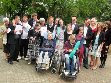 Richtig heißt diese Förderschule für geistige Entwicklung. Einer der Schüler war durch Umzug nur im letzten Jahr dabei. Am 15. Juli gab es zum letzten Mal Zeugnisse, überreicht mit vielen guten Wünschen für die Zukunft von der Schulleiterin Gabriele Klotz und ihrer Stellvertreterin Janna Grewer-Willwoll. Und eine Feier, gestaltet von Lehrern und Schülern, an die sie sich noch lange erinnern werden. Die Playback-Rockgruppe, die Tanz-AG und die Schülerband waren an der Gestaltung des Abschiedsprogramms beteiligt. Zum Abschluss sangen die Entlass-Schüler und ihre Lehrer/-innen den Entlassungssong „It’s my life“.