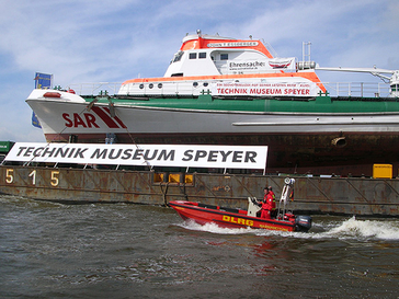 Dieser passierte auf seinem Weg ins Technikmuseum Speyer den Rheinabschnitt Monheim. Die DLRG Monheim erwies dem mehr als 40 Meter langen Kreuzer, der Jahrzehnte im Dienst an den deutschen Küsten war, die Ehre und begleitete ihn auf dem Weg von Benrath nach Hitdorf. Im unteren Niederrhein konnte der Seenotkreuzer den Weg eigenständig bewältigen. Aufgrund des zur Zeit vorherrschenden niedrigen Wasserstandes musste das Schiff in Duisburg auf einen Schwimmponton gehoben werden, damit die Reise weitergehen konnte. Auf besagtem Ponton passierte der Kreuzer am 24. Mai Monheim. Die DLRG Monheim begutachtete mit großem Interesse das Geschehen und ermöglichte einigen Ehrenamtlern einen unvergesslichen Blick auf die „große Schwester“ der Deutschen Gesellschaft zur Rettung Schiffbrüchiger. Hervorzuheben ist an dieser Stelle, dass die DGzRS eine eigenständige Rettungsorganisation ist, die sich mit der DLRG lediglich das gemeinsame Ziel teilt: den Kampf gegen den Ertrinkungstod.