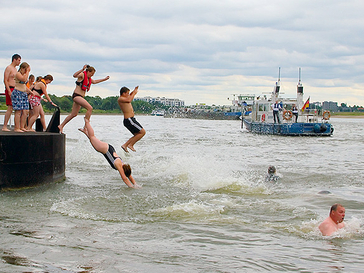 Die DLRG Monheim warnt davor, den Rhein zu unterschätzen und betont, dass das schwimmerische Durchqueren des Rheins verboten ist. Nur unter Begleitung der Wasserschutzpolizei und eines Rettungsbootes der DLRG war die im Vorfeld genehmigte Veranstaltung des letzten Wochenendes möglich. Das Pfingstschwimmen bietet den ehrenamtlichen Schwimmern der DLRG jedes Jahr die Möglichkeit, ihr Können zu testen und nach der Winterpause zur Praxis zurückzukehren. Sollten Sie Interesse an der DLRG Monheim gefunden haben, besuchen Sie doch die Homepage www.Monheim.DLRG.de.